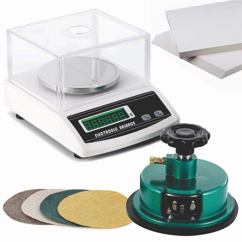 Objective: Sample Cutting – A specialized cutter (usually 100 cm², 50 cm², or 10 cm²) cuts a precise sample from the material Calculation – The scale automatically calculates the weight per square meter based on the sample area and measured weight Display – Results appear directly in g/m² (GSM) , oz/yd², or other units.